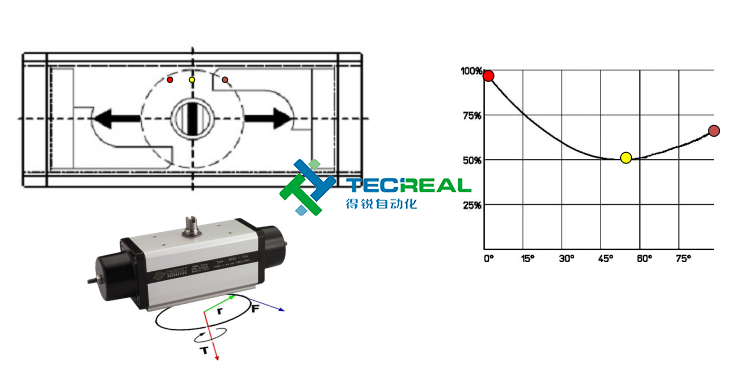 綜上所述,OMAL的撥叉式氣動(dòng)執(zhí)行器在輸出扭矩上是更為適合球閥和蝶閥啟閉,因?yàn)槠浣Y(jié)構(gòu)的不同,這也就導(dǎo)致了他們兩者在輸出扭矩上的不同。
