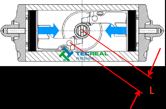 其次,撥叉式氣動執(zhí)行器運(yùn)作時(shí),輸出力扭能隨角度改變而改變,而且在閥門開啟或關(guān)閉位置,力矩值最大,這正好與閥門的規(guī)律相符。 相比齒輪齒條式執(zhí)行器,撥叉式氣動執(zhí)行器和更能節(jié)省力矩,因?yàn)辇X輪齒條式執(zhí)行器的力矩是恒定。
