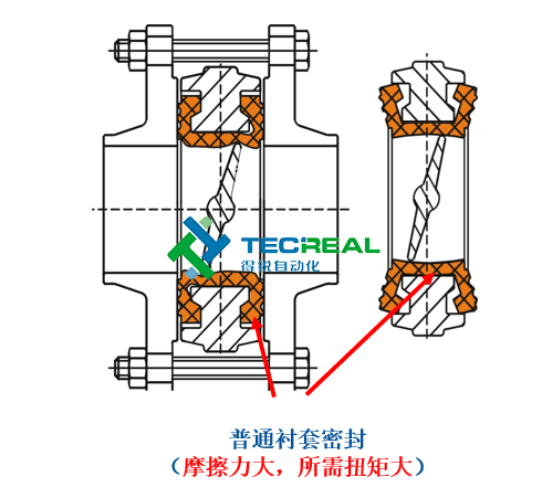刮刀唇形結(jié)構(gòu),其好處是自動(dòng)清潔球體表面的雜質(zhì),保持閥座的耐磨性。