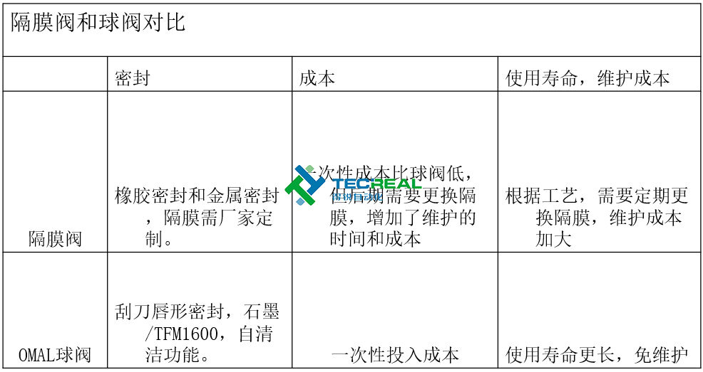 特殊工位閥門選型比較:隔膜閥、球閥比較一覽表