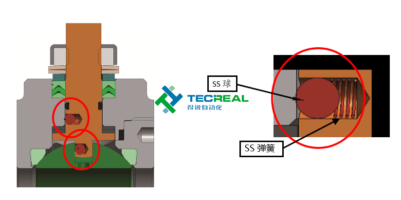 不僅如此,OMAL的480/512系列球閥,還自帶防靜電裝置,在閥門運行期間(特別是與執(zhí)行機構)接觸的不同零配件之間的摩擦,可能導致靜電,防靜電裝置可以避免這種靜電和防止火災或爆炸的風險,起到防爆的作用,并取得ATEX 94/9/CE的防爆證書。