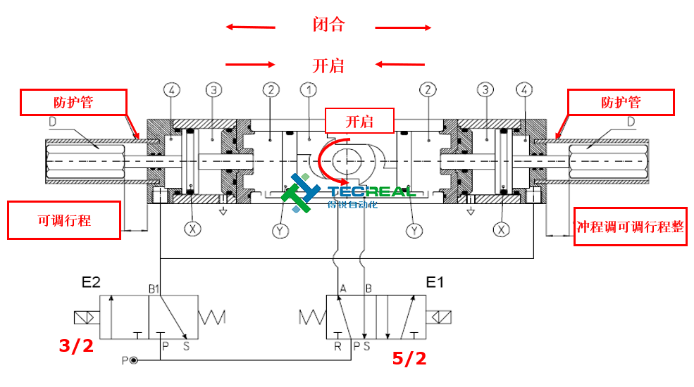 E1,二位五通閥,控制執(zhí)行器;