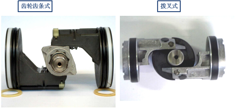 齒輪齒條式氣動(dòng)執(zhí)行器:齒條間為滑動(dòng)摩擦,阻力大,易磨損。
