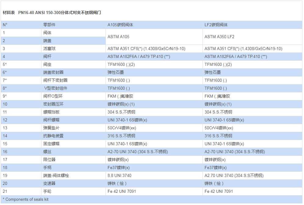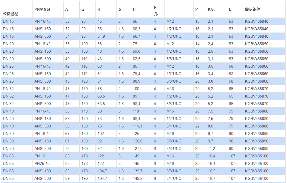 密封材料:PTFE加玻璃(RPTFE-GF),PTFE加碳石墨(RPTFE-CF)。如需其它密封材料,請與我們的銷售部門聯系。