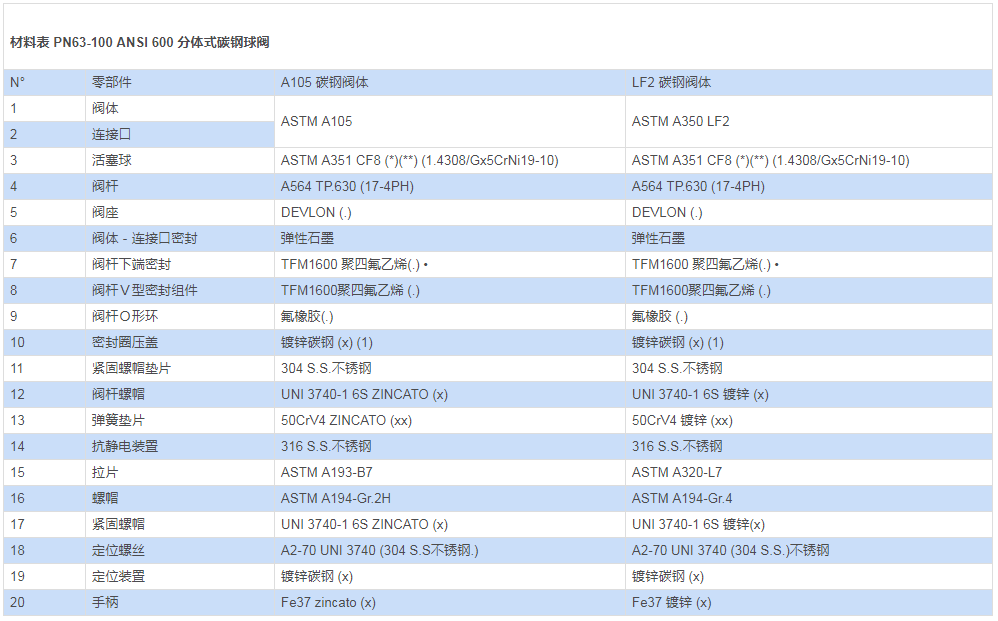 采用材料(用于閥體/活塞球/閥桿)與標(biāo)準(zhǔn)配置不同的參數(shù)要求,請與我們的銷售部門聯(lián)系