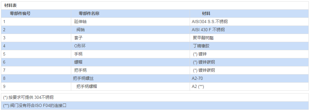 | (**): 對(duì)于公稱通徑 ≤DN32 的閥門,僅能提供 CF8M材料的? |