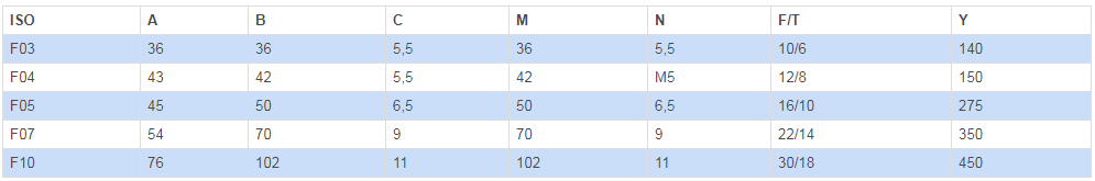 | (**):閥門沒有符合ISO F04的連接口 |